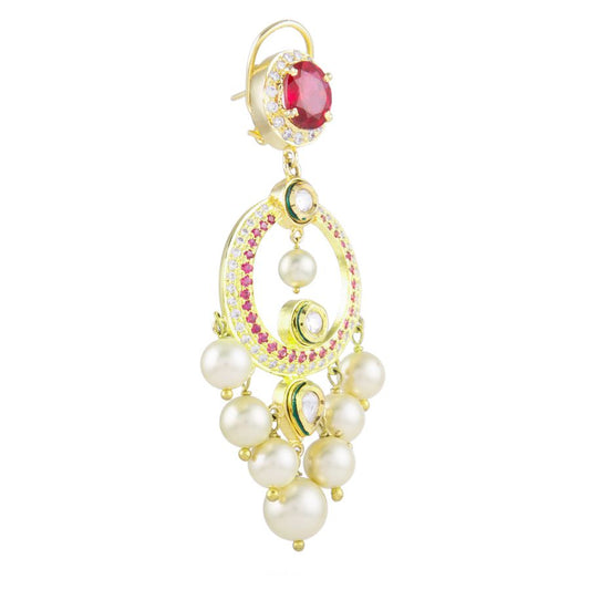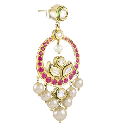 Audrey gold kundan and pearls ruby and zircon earrings