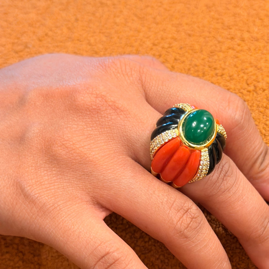 TrendingEmerald, Coral, Black Enamel Ring