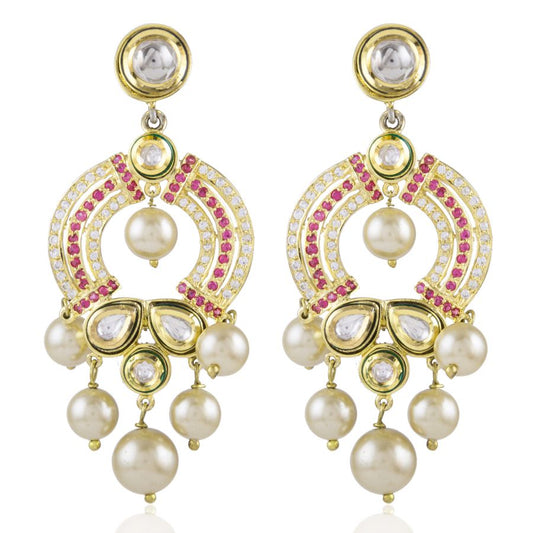 Audrey gold kundan and pearls ruby and zircon earrings